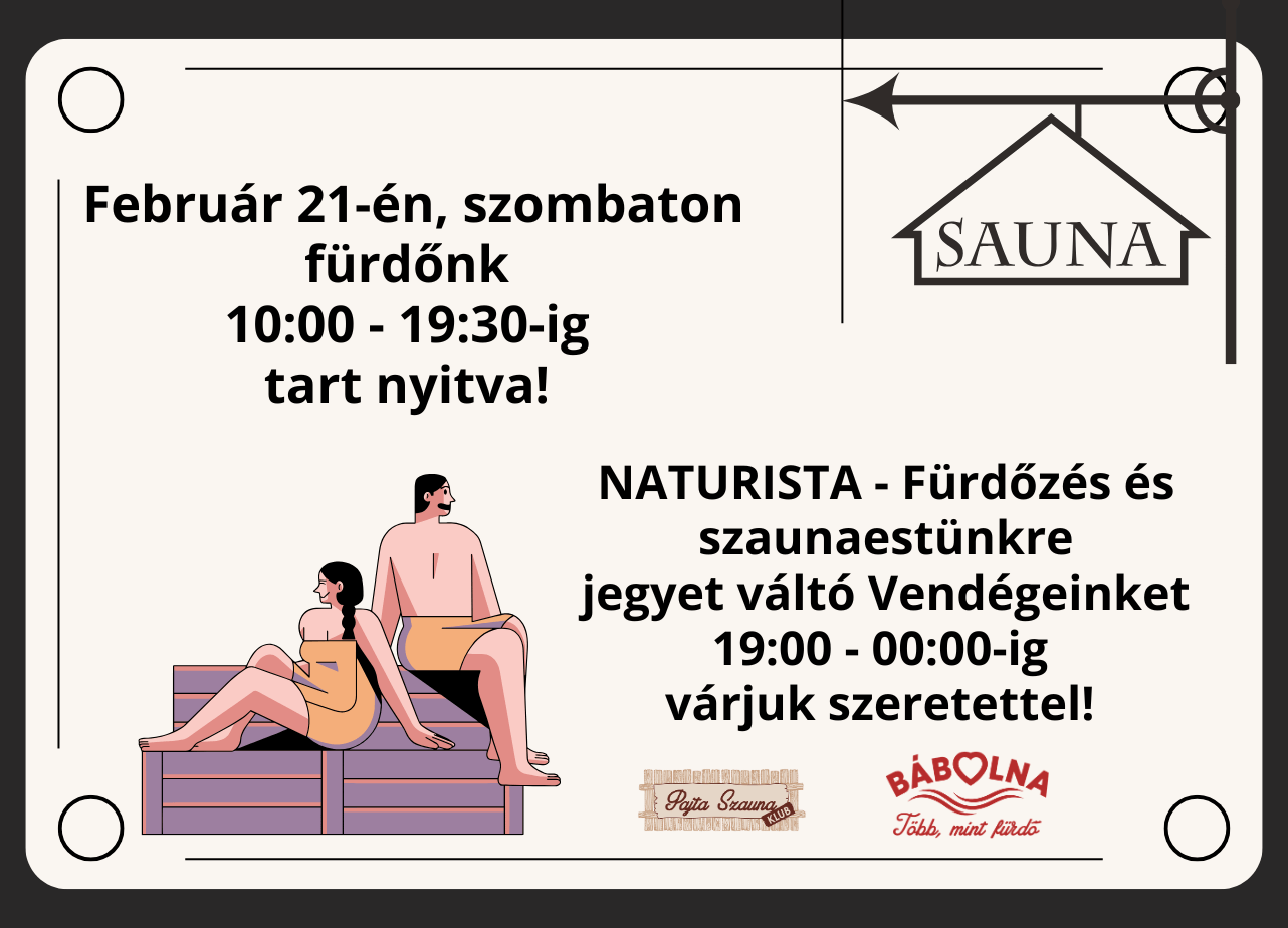 Szaunavilág: Hétköznap 12:00 órától tart nyitva