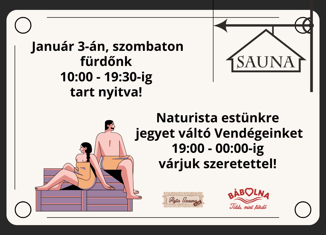 Kedves Vendégeink! Január 27-én szombaton, Szalai Mónika szaunamesterünkkel izzadhattok. Szaunafelöntéseink 19:00, 20:00 és 21:00-kor kezdődnek. A szaunaprogramok fürdőruhamentesek, a test…