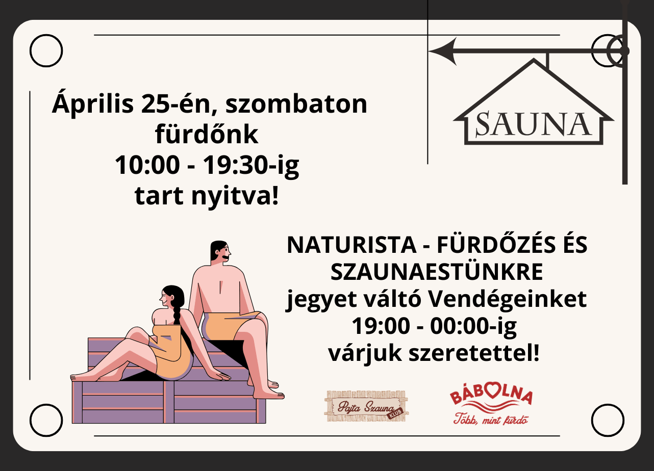 Kedves Vendégeink!Sok szeretettel várunk Benneteket november 8-án szombaton, Naturista Szauna estünkre, ahol T. Szabó Timi és Sirián Laci szaunaprogramjai mellett,…