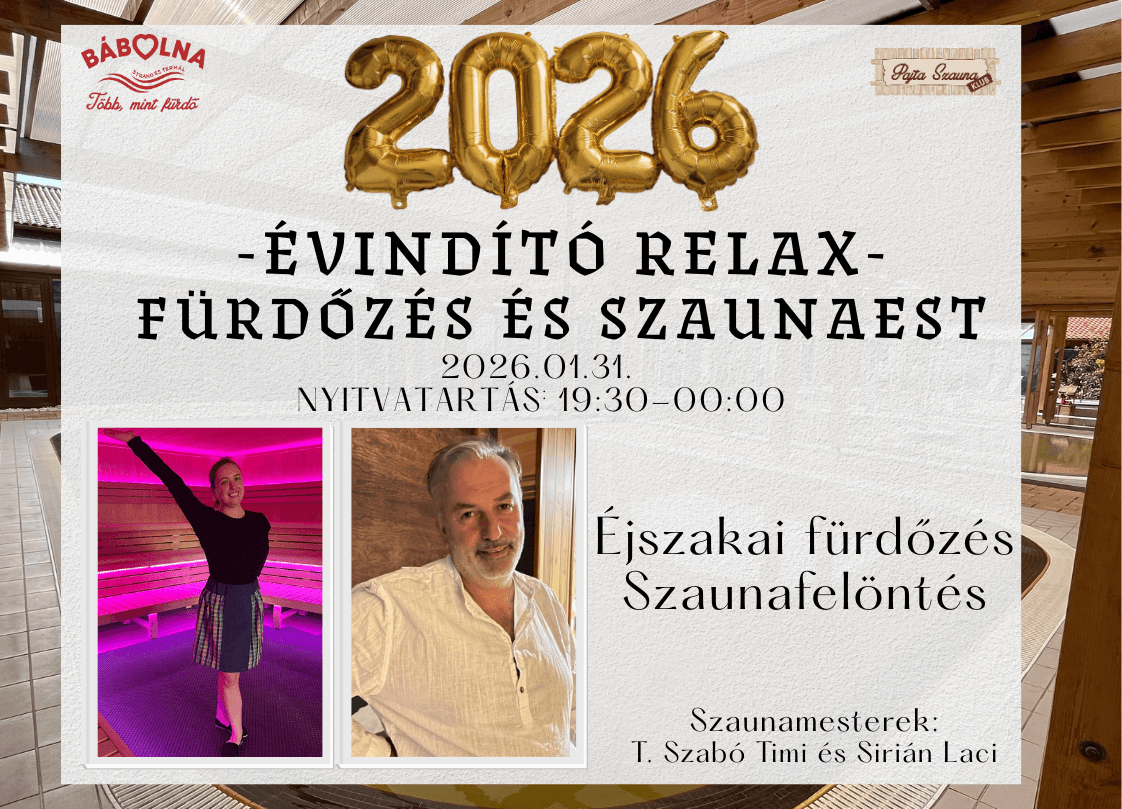 ÉVINDÍTÓ RELAX – Fürdőzés és szaunaest a Bábolna Fürdőben – január 31-én, szombaton ![]()